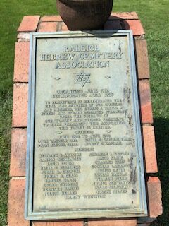 Charter members of the Raleigh Hebrew Cemetery Association are listed on a plaque at the cemetery gate. Their successors take seriously the mitzvah of burying the dead in accordance with Jewish tradition, and operate and maintain the cemetery as a peaceful and dignified facility.